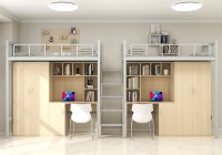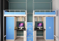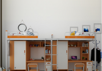 宿舍公寓床因空間利用率大,美觀實用而一直受到學校和員工宿舍的歡迎,那么宿舍公寓床有哪些配置方案呢,今天就來給大家介紹一下。四人間宿舍公寓床配置方案可選擇兩連體宿舍公寓床,有中梯和側梯兩種形式,側梯節省空間,適用于房間寬度有限的情況,性價比高。中梯學生上下樓更為方便省力,但要有足夠的縱深。