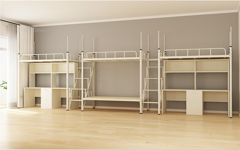 ?三聯體四人位公寓床是一個不錯的選擇,尤其適用于學校等場所。?這種床的設計考慮到了實用性和空間的有效利用,其特點包括: