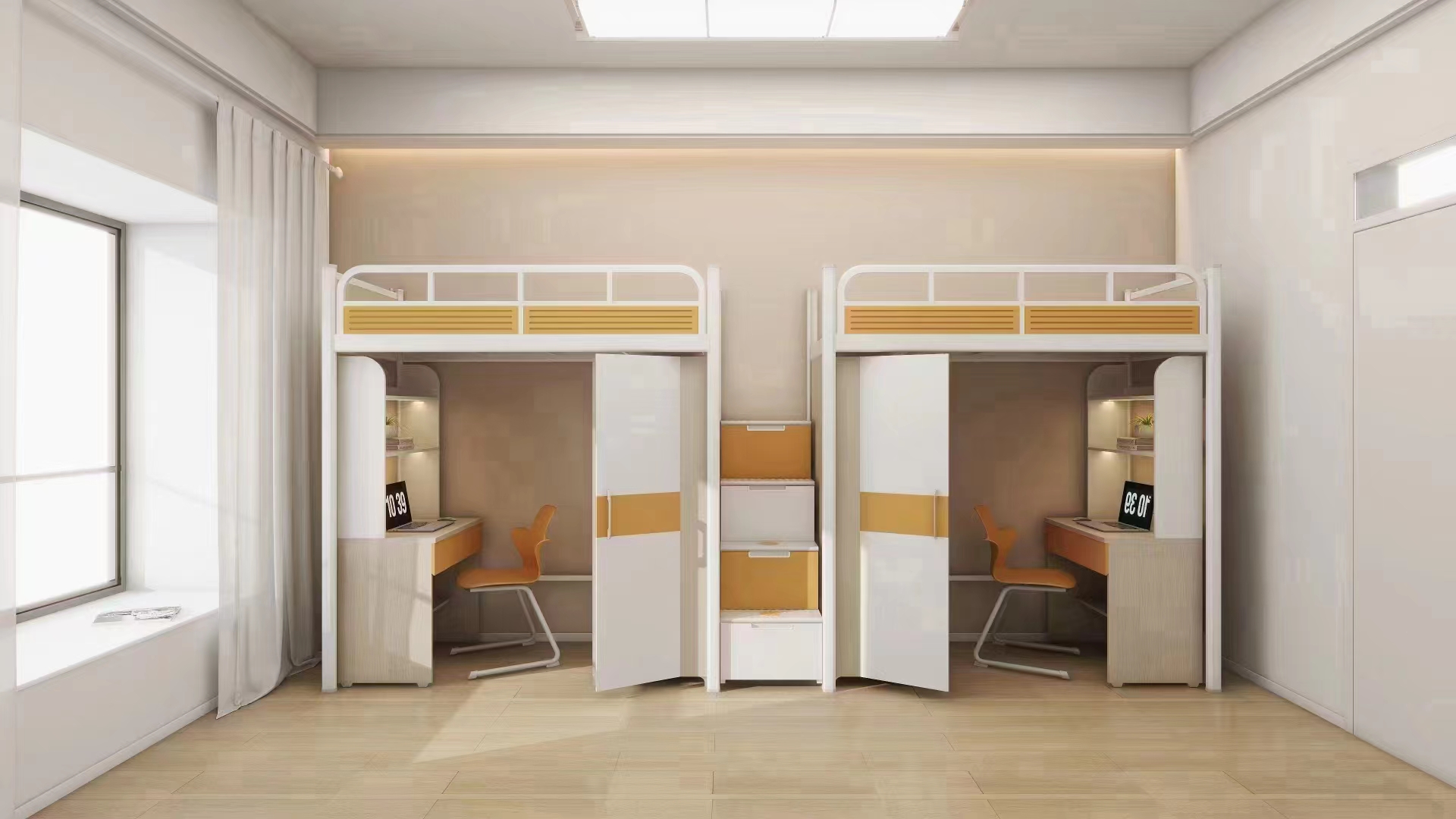 從安全角度來看,版式公寓床同樣表現出色。床體的邊角經過精心打磨處理,圓潤光滑,有效避免了磕碰受傷的風險。穩固的結構設計,確保在使用過程中不會搖晃或發出噪音,讓您無論是翻身還是上下床,都能感到安心。同時,床梯的設計也十分人性化,合理的間距和防滑踏板,讓您上下床更加便捷、安全。