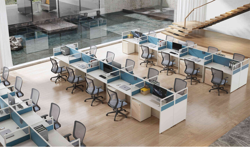 根據工作團隊或部門將辦公桌椅分組擺放。例如,將一個項目團隊的桌椅集中在一起,方便團隊成員之間的溝通和協作。