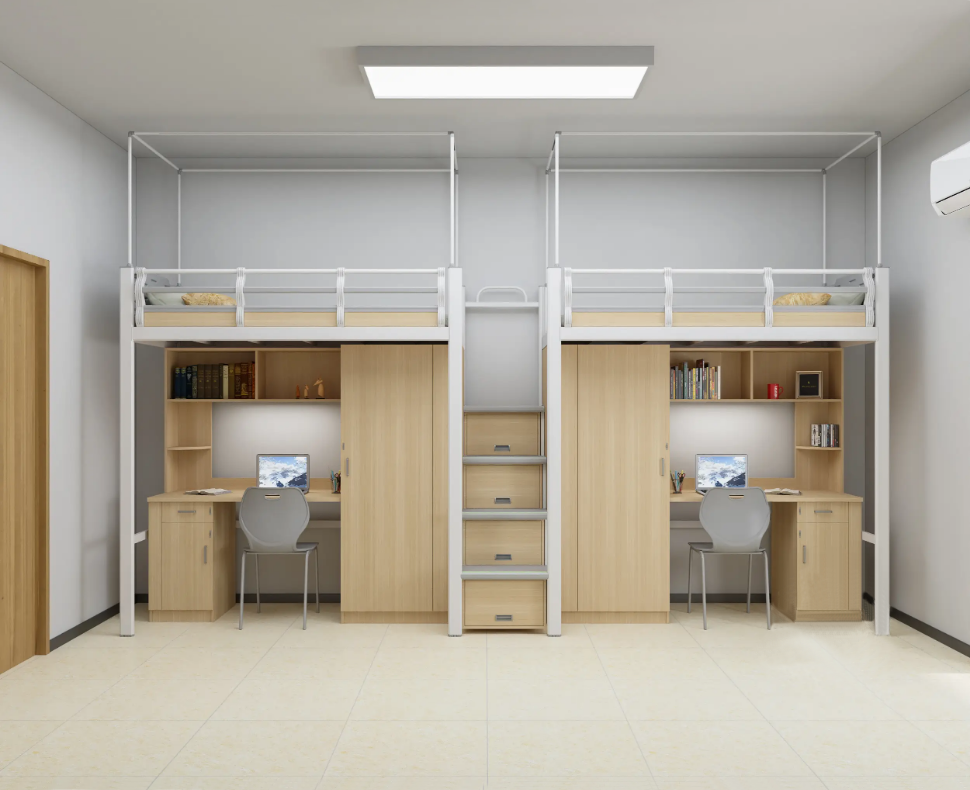 合理利用空間:公寓床通常采用上下鋪設(shè)計,可以有效節(jié)省空間。可以根據(jù)個人需求,將下鋪設(shè)計成學(xué)習(xí)區(qū)、儲物區(qū)等,提高空間利用率。
